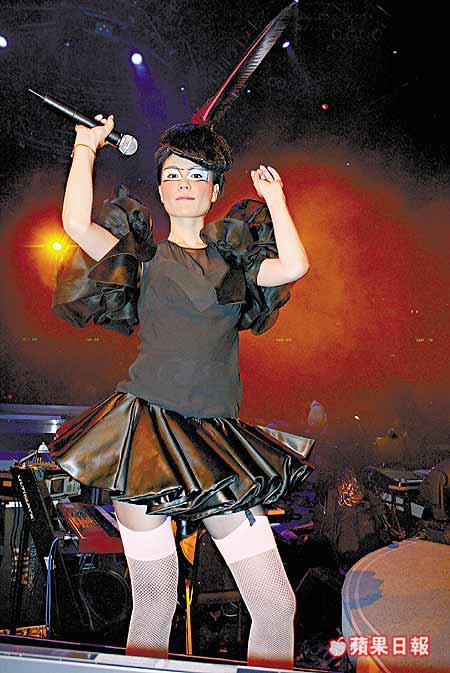 王菲的演唱會前晚開鑼,她的別致造型和化妝,以及保持水準的唱腔,令現場觀眾情緒高漲。王菲一共換了六套衫,當中不少採用了燈籠式設計,加上她別樹一格的日本卡通《小雙俠》眼部化妝,叫人大開眼界。
