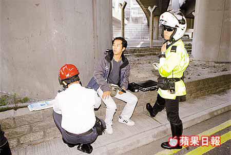 【本報訊】三十歲姓林男子,昨中午十二時許駕駛貨車,沿葵涌貨櫃碼頭南路出九龍,當抵達荔景邨對開處時,事主報稱因閃避一頭流浪狗扭軚閃避,導致貨車失控鏟上行人路掃毀十米鐵欄,再直撞毀一個石屎花槽,繼而翻側橫亙路中(圖一)。意外中事主未有受傷,由警員進行酒精測試證實沒有飲酒(圖二)。 張培生攝