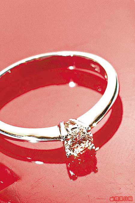 18K白金指環鑲上圓鑽,乃經典的求婚場面必有款式。雖然這隻沒有一卡重,但戴上手都好搶眼,價錢經濟,着便服佩戴都一樣咁正。