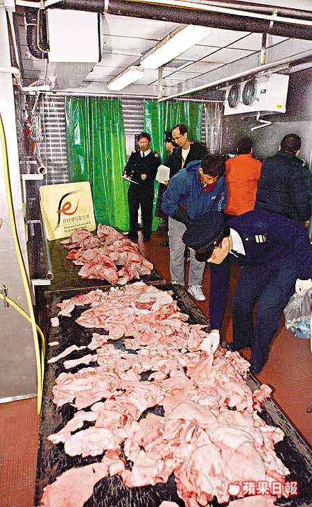 食環署發言人稱,近期接獲多宗投訴,指有肉食分銷商,把來源有問題的懷疑走私及冰鮮豬,供應一些超級市場及肉檔充當新鮮豬肉出售,遂於昨日主動出擊,進行一項代號「清晨鳥」大規模行動,突擊搜查十三處地點,包括多間惠康超級市場、新鮮糧食店及豬肉供應商的分銷中心工場,結果撿獲近兩噸無印或已被剝皮來歷不明豬肉化驗。