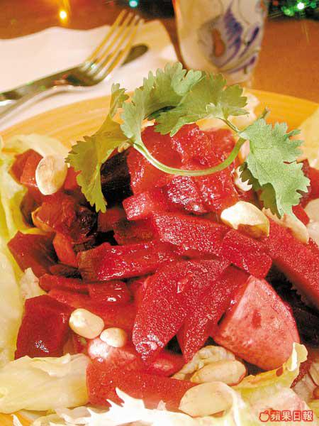 任職墨西哥菜大廚多年的Gurung說:「墨西哥人過聖誕,和大家一樣都是一大群人聚集一起,享用一頓豐富的晚餐。墨西哥最典型的聖誕應節食品,就是聖誕雜果沙律。」他們的沙律跟我們的不同,由於墨西哥天氣乾燥,農作物一般都屬根類植物,他們會用紅甜菜(Beetroot)和墨西哥野葛(Jicama)加入聖誕沙律中,兩種都是根類植物。紅甜菜的顏色血紅,跟聖誕的專用顏色很配合。