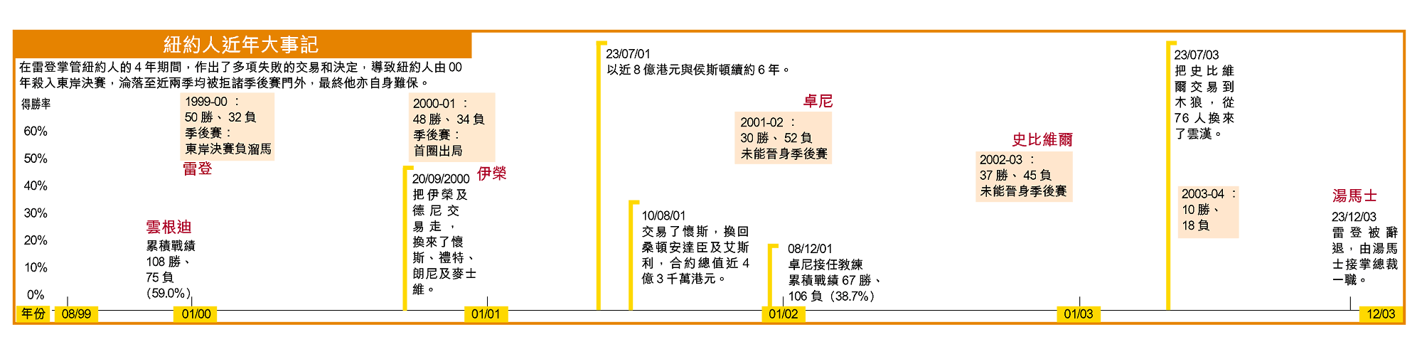 紐約人周一宣布解僱總裁雷登(ScottLayden),同時任命前溜馬教練湯馬士接任。在雷登掌管下,紐約人近兩季皆絕緣季後賽,今季暫得十勝十八負,且班費更是聯盟最高。面對諸多辣手問題,湯馬士如何才能把千瘡百孔的紐約人扭轉乾坤?《ESPN》網站為湯馬士列出了五大重建紐約人的重點。