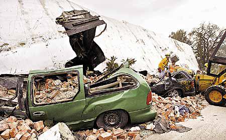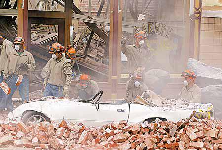 今次地震重災區,是離震央三十公里、人口二萬五千的小鎮帕索羅爾布斯(PasoRobles)。鎮內一棟在一八九二年用木和磚石建成的兩層高鐘樓建築物,抵受不了強震,像瀑布一瀉而下的倒塌,樓頂幾噸重瓦礫掉落街上,壓毀樓下一排汽車,一個被砸毀的汽車車主下落不明,建築物內兩名時裝店女職員更走避時葬身瓦礫下。