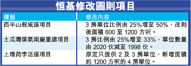 恒基看準換樓潮,早前已增加土瓜灣煤氣南廠,及上環荷李活道項目的大單位比例,以提供更多3房及4房大單位。