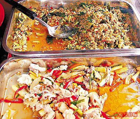 先解釋一種泰食文化:喺泰國唔少街邊檔甚至商場都會擺出一盤盤餸,泰人會叫一碟白飯再加A餸或B餸,呢種食法泰文叫「com鏡」,基本上係十分地道嘅食法。
