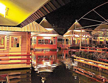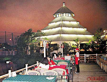 去外地食飯,有時是為了吃食物的質素,但有時則是吃環境,這間名叫PKK的浮台餐廳則兩者俱備。話說最近在曼谷的Kaset區一條大直路兩旁,起了不少大大間的餐廳,而PKK可能是最大、最靚和最有Point的。先看圖中的這張無敵TopShot,全餐廳建於浮台之上,氣勢不凡。除了吃之外,PKK更有個別卡拉OK房,而且每晚7時後更有樂隊Live演奏。更駕勢的是,在水中央有埋大型投射螢幕。
