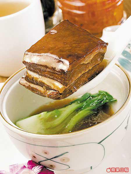 精裝東坡肉$15?位:一般東坡肉女孩子可望而不可及,因為嚿嚿豬腩肉太肥膩。所以廚師特別用冰糖、豉油、紹興酒逼走肥油,令整塊東坡肉頓時清減了不少,而且一盅一件夠精緻,一人剛好一小塊肉和半棵白菜。