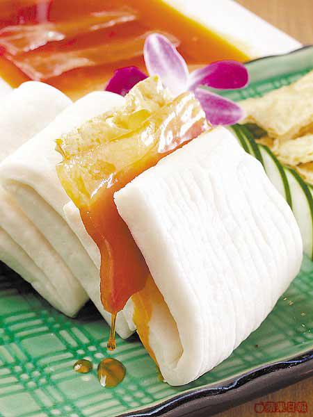 蜜汁火方$68?4件:這味是傳統上海菜,把蒸熟的金華火腿,配以熱冰糖醬,鹹火方撞甜蜜汁,加上脆香腐皮一起放入包內夾着吃,有點似豬柳漢堡,但酥香軟糯,肥而不膩,口感和味道有趣多了。