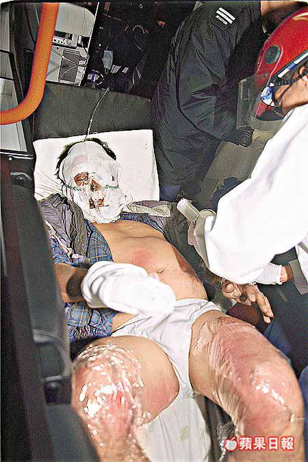 近八十名消防員及救護員接報趕至,首先在樓下發現三名身體灼傷的男子。稍後,煙帽隊人員在大廈的七樓走廊及梯間,再發現七名身體多處燒傷的男子。最後,煙帽隊人員衝入火場,再尋獲一名全身起火焚燒、身體蜷曲躺在地上的男子。消防員十四分鐘後將火救熄。現場消息稱,傷者中除兩人傷勢較輕外,其餘九人嚴重燒傷,有人手指被燒至甩脫,亦有人雙腳被燒焦。救護員用十輛救護車,將十一名傷者送往明愛醫院及瑪嘉烈醫院,九名重傷者經急救後情況危殆。
