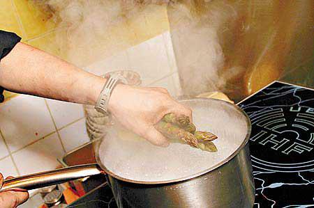 從超市購回的蘆笋,尾段約3吋的部份較嚡口和有渣,可切走不要。