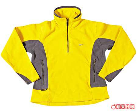 尼龍抓毛雙面褸,以深藍配芥辣黃,一面係跣水尼龍料,另一面係抓毛料,兩面款式各有不同。