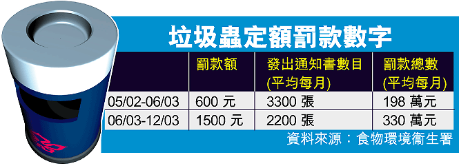 港府在今年初爆發沙士後提出多個方案,重罰垃圾蟲,以加強衞生,首先於今年六月底把亂拋垃圾定額罰款由六百元大增至一千五百元,繼而諮詢公眾,針對第二次違例垃圾蟲,法庭可判社會服務令。