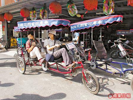 費用:三輪斜躺協力車,1小時NT150,2小時NT200,3小時NT250