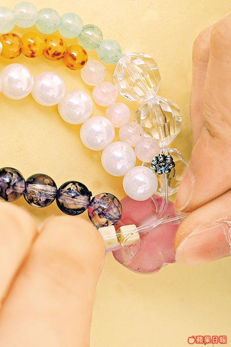 材料:各式膠珠$12、橡筋魚絲$3
