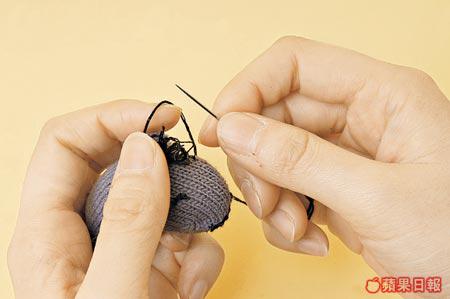 近排天氣驟冷,添新冷手襪的同時,舊有的則可易角為裝飾品。只需把手襪指頭塞到脹卜卜,縫線貼石後,登時變成Cute版襟針。要做狗仔、豬仔用白色手襪,灰色的就做成這隻馬仔。若然剛好有對穿窿手襪,廢物利用無浪費。