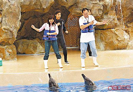 看Lin和Blanche可以一親海豚,作為旁觀者的小記滿不是味兒,心有不甘,決定看完海獅海豚的表演才走!採訪當日是星期一,海洋劇場前所未有地全場爆滿,很多自由行觀眾要站起來觀看。我真有運,竟被抽中與海豚同台表演,雖不能落水和海豚嬉戲,但有機會站在6,000名觀眾面前與海豚翩翩起舞,來個合照,相信亦羨慕死幾千人吧?