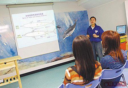 「豚聚一刻」活動前日起推出,反應相當踴躍,活動每節90分鐘,大家先來一課海豚生物課,認識海豚的身體構造、如何辨別雌雄、應如何保護環境避免傷害牠們。上完課,大家不要心急,還須通過1個小型體檢,填寫身體狀況及量度體溫,一切符合要求,就可以出發親親海豚。