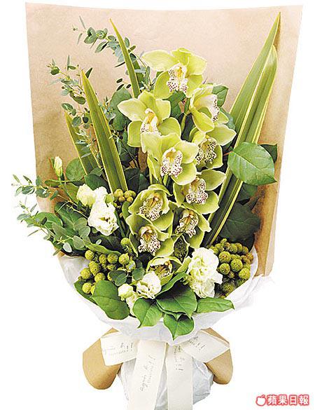 蕙蘭代表成熟大方,正如這束以蕙蘭、劍葉、大足球組成的花束般清簡脫俗,與火辣辣的紅玫瑰相比,這款更顯清簡高雅。(最少四日前預訂,送貨須另加收費)