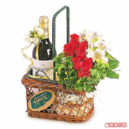 紅玫瑰及紅酒籃