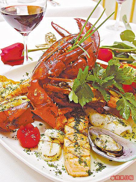 ●Baci海鮮拼盤,烤龍蝦、鮮魚、大蝦、三文魚、鮮魷魚、青口及帶子。
