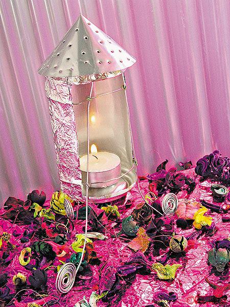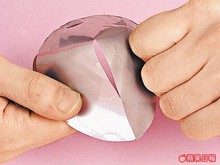 要成功在燭台帽子上打上圓點,最好在鋁片下放上一塊凹凸不平的坑紋膠板,自然能夠打出通心的圓點圖案來。