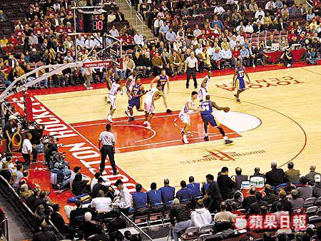 接近上半場完結時,雙方有一空檔,其間球場上的大螢光幕出現姚明微笑的樣子,原來是火箭特設的「姚明教中文」環節。今次姚明教的是「Teamup」,接着螢幕打出「加油」兩字,於是全場一萬八千多個外國人就隨着姚明念加油,一時四周「渣柚」之聲不絕。