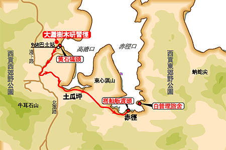 營地選址赤徑,何解?一,人少夠靜,無人擾騷二人世界;二,行程毫不吃力,西貢黃石碼頭出發步行至赤徑只需2小時,女孩子絕對應付有餘。甫下車,碼頭旁燒烤場傳來陣陣烤肉香,Rock與Chrissie看得口水流,但時間緊迫,不得不收拾心情起行,況且前路風景美麗,貪吃念頭全消。