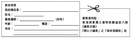 各位「小蘋果」,在新的一年,在你的心目中,又有甚麼新的精采?請你寄一張可愛相片給我們,讓大家跟你分享你的犀利吧!
