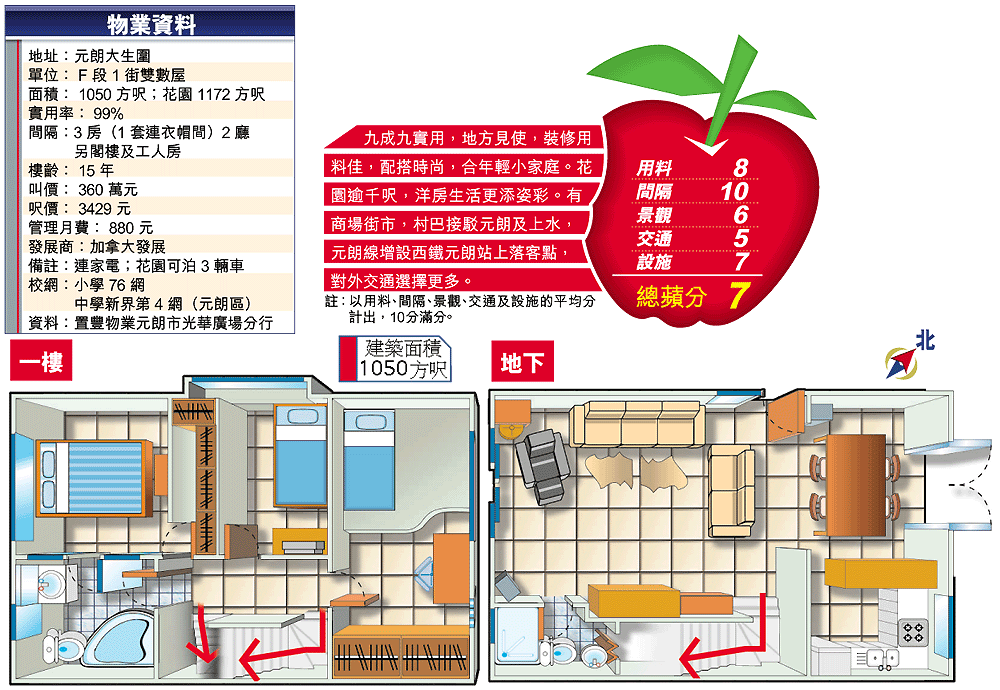 元朗錦綉花園實用率高,而且間隔可以大改,任何裝修設計意念,都有充份發揮的空間。好像這伙,實用率99%,寬廣的內櫳,配以70萬元全新裝修,設計用料清新時尚。主人房布局滿載心思,玻璃浴室及半掩衣帽間,還有特別巨型的小朋友睡房,均凸顯此屋實用見使。 記者?攝影:伍志輝
