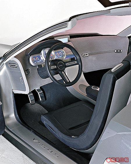 至於車廂方面,廠方特別為Visos加入不少銀白面板裝飾、獨特嘅跑車軚環等等,十足跑車路線嘅概念車風格。不過,表板則屬新組合,除中間一個大圓表外,旁邊重有兩組由SONY提供嘅高解像度LCD顯示屏,可為駕駛者帶來可靠又準確嘅行車資料。