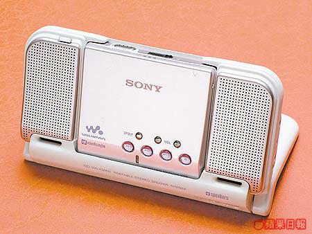 可摺式喇叭座帶出街非常方便,摺起猶如一個粉盒。備Group檢索播放功能、6階段EQ音質調整、電池剩餘顯示及連續防震系統。