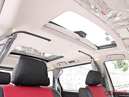 至於車廂鋪排,前後三排七座位組合,連帶車廂四周門壁,均以雙色真皮鑲嵌,中排重各自備有電動按摩功能,匹配左右雙電動趟門組合,坐得夠晒舒服,加上電窗、電鏡又有雙天窗配套,還有前後獨立恒溫冷氣,重預留有高級音響座編排,完全星級享受。