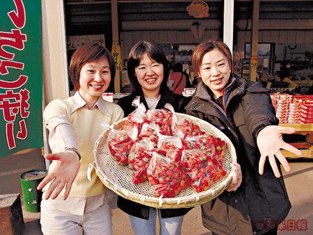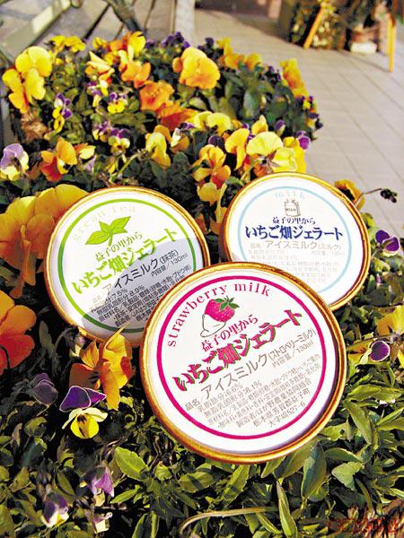 日本人最有生意頭腦,既然橡木以草莓揚名,自然少不了用草莓掛帥的各式副產品。甚麼草莓酒草莓批草莓汽車等,甚至連草莓吉蒂貓都有。不過,最逗我歡心的卻是即製草莓雪糕。所謂即製的,其實是指即場將新鮮草莓攪爛混入雪糕之中,於是吃起來就真的是一啖雪糕一啖芬香草莓肉,實在凍入心又令人動心,難怪全日本各地識貨人不惜千里迢迢來到其貌不揚的雪糕店,為的就是這一口鮮莓雪糕!