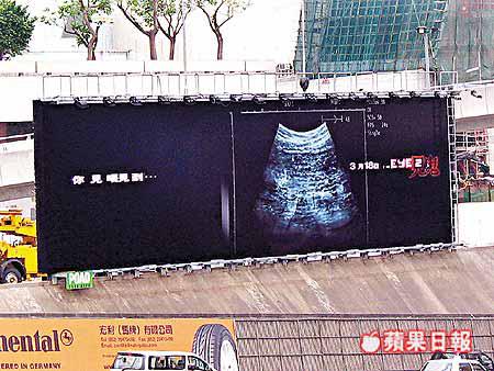 此外,舒淇主演的《見鬼2》將於本月十八日上映,故事講述曾經自殺和懷孕的舒淇經常見鬼。不過,據該片監製陳可辛表示,由於影片鬼胎兒大特寫的海報意識太過恐怖,電影公司惟有換上另一款超聲波照胎兒的海報,掛在紅磡海底隧道旁。