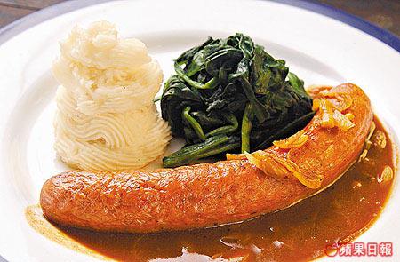 午餐無論是頭盤、主菜或甜品,每項至少有三個選擇,拍攝當日是香腸菠菜薯茸,又嫌普通?但英國人就是吃這些,至少菠菜不嚡口,肉腸夠粗身,薯茸是新鮮自製,不是溝粉。兩道菜的午餐$140,三道菜要$180。