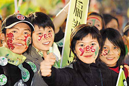「阿扁仔,當選!阿扁仔,當選!」昨天下午兩點半,陣陣震耳欲聾的閩南語口號,劃破奇美醫院昔日的寧靜,群情洶湧的挺扁旗海中,千幾名台南縣村民揮動着扁旗趕到奇美醫院,把急診室門口的空地和停車場擠得水洩不通,醫院一下子變成了造勢場地。