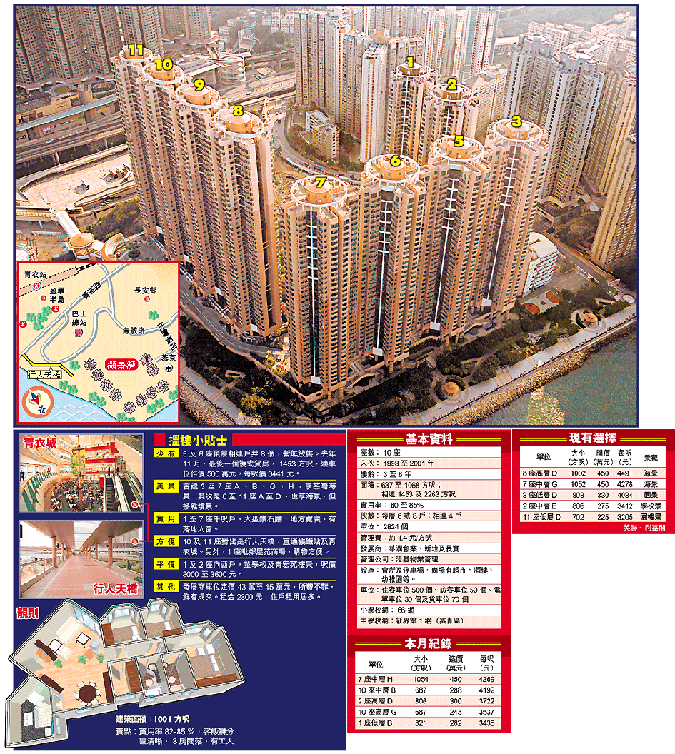灝景灣位處青衣島東北角,近半單位臨海,提供區內罕有的逾千呎大宅,更有特大逾二千呎相連戶,加上名牌發展商效應,用料落本,集三大優點於一身。