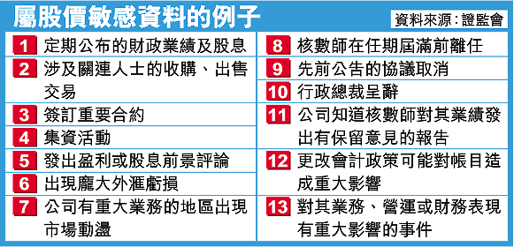 通函續稱,若分析員從上市公司管理層收到非公開的股價敏感資料,他應該通知上司,由上司鼓勵有關上市公司將資料公開,證監亦認為分析員應通知港交所跟進。