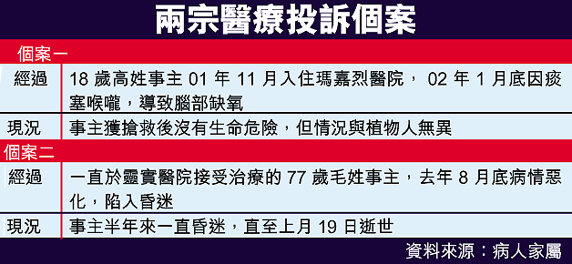 【本報訊】兩名瑪嘉烈醫院及靈實醫院病人家屬,懷疑因院方疏忽而導致親人在住院期間延誤救治,兩邊家屬曾分別向醫院管理局公眾投訴委員會投訴,但皆被裁定不成立,現於立法會議員陳偉業協助下,嘗試再次申請法律援助,循民事途徑追究責任。