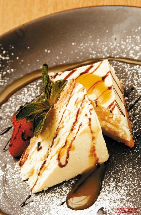 這款Homemade甜品,大廚將傳統的紐約芝士餅改良,加了少許檸檬味,而芝士份量不會太重,雪凍約四小時後便吃得;此外,賣點竟是棄用砂糖,而落糖霜,口味清新不甜不膩,卡路里低,女士們吃多多都冇有怕!