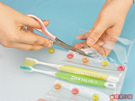 做牙刷座記得選用塑膠瓦通板,防水防霉兼易於清理;連膠水亦毋須使用,用㩒釘將瓦通板及膠片釘好便完成,做法容易。而間隔的多寡及闊度更可自行決定,稱得上是度身訂做的牙刷座。