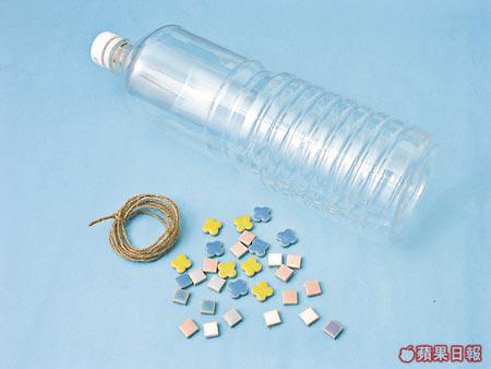 小瓷磚2包$28、幼麻繩1卷$5、1.5公升膠樽3個