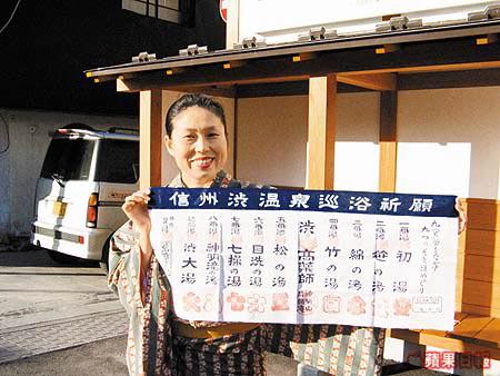 信濃溫泉區約在一千三百多年前便開始開發溫泉,環繞橫湯川共有九個不同的溫泉,地獄谷、上林、涉、安代、星川、保波、角間、湯田中和新湯田中等。所謂的「厄除祈願巡浴外湯」是在涉溫泉街的中心地區,250年前的一場天災,神明山因山泥傾瀉,形成今日的涉溫泉街多斜路的模樣。天災過後,各溫泉旅館如雨後春笋般愈開愈多。