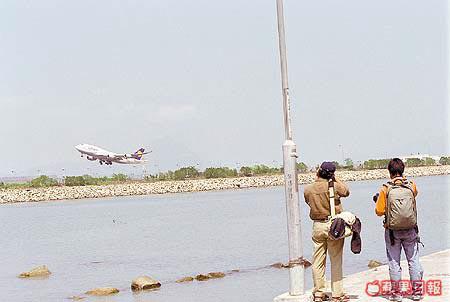 終站是在南面跑道頭的導航燈,乘巴士在東岸路下車後,沒行人路直接到達,要行草地、馬路,還要小心帶針刺的龍舌蘭勾破褲管,又是這一句,要感受飛機從頭頂降落的震撼感,值得的。時近黃昏,引頸以待的貨機差不多到了,從遠方望到鐵鳥影子,慢慢由小變大,隆!巨鳥高速滑過頭頂,準確的沿着導航燈向跑道下降。追飛機,緊張刺激,大家雖被烈日曬得黑黑的,身疲口乾,但飛機蓋頂的震撼仍深留腦海,足堪回味。