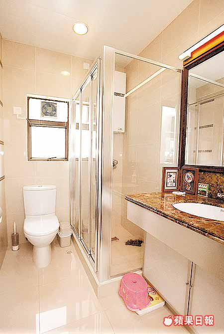 套廁牆身及地台鋪雲石,廚房兩旁建廚櫃,分別配以磨砂玻璃及胡桃木,加上選用玻璃面抽油煙機,枱面鋪實心材料,滿有現代家居氣息。單位已做防水工程,住得安心,戶主還不惜工本,將電梯走廊的牆磚及地磚都換過,並建假天花燈槽,務求盡善盡美。