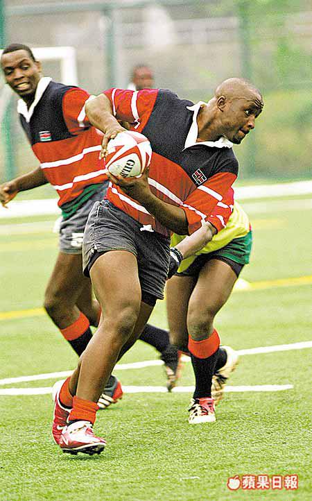 一年一度的香港國際七人欖球賽,將於本周五起一連三天假香港大球場上演。參賽的二十四支球隊已陸續抵港,部份更立即展開操練。與衞冕冠軍英格蘭同組的蘇格蘭(圖一),昨日與非洲球隊肯雅(圖二)同時間在佐敦京士柏欖球場操練。今季巡迴賽暫列第十一位的肯雅,陣中主力奧斯卡(圖二右)最負盛名,他目前以二十二次「達陣」,暫列今季「達陣王」。 李勇明攝
