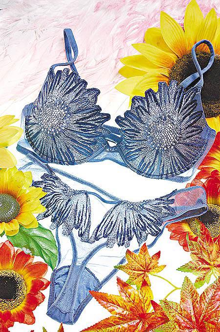 意大利CottonClub,戴起猶如兩大朵太陽花在胸前,而T-Back內褲背面的繡花則將太陽花與天使翼渾然天成,極有特色。