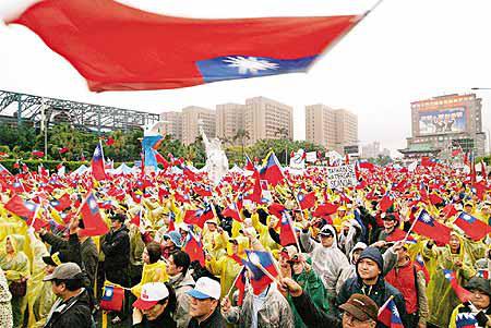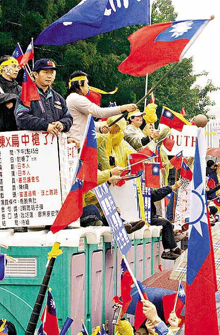 在集會人士熙來攘往的大街上,有五名高中女生揮着青天白日滿地紅旗叫罵阿扁,十七歲的Michelle說她的學校不准學生談政治,老師知道她們來示威一定會罵。但她們的父母都很支持,「民主選舉關係到台灣的未來,雖然我們還未有投票權,可我們也是台灣公民,也有權利和義務表達我們的訴求。」