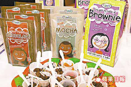 現場可看見許多零食及甜品,打着低脂肪的口號,讓想吃零食又擔心發胖的消費者,有藉口大吃一番。除了低脂零食外,也有專為女性設計的減肥茶包,強調有助維持纖瘦身材。