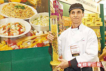 在加拿大生產的意大利有機麵條,含豐富營養,並由廚師現場烹調供一眾參觀者試吃。